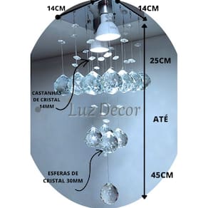 A Luz Decor e Lustres, fabricantes de lustres de cristais, acrílicos, tem como objetivo garantir produtos de qualidade com preços competitivos no mercado de Lustres, Pendentes e Luminárias.DESCRIÇÃO DO PRODUTO* Lustre Com 17 cristais de 30mm* Modelo: Torre* Altura: 30CM Á 40CM De Altura* Base de inox espelhado 14x14cm acabamento corte a laser.* Castanhas de cristal de 14mm.* Modelo para 2 Lâmpada GU10 (Lâmpada Não inclusa)* Direto da fábrica para seu ambiente