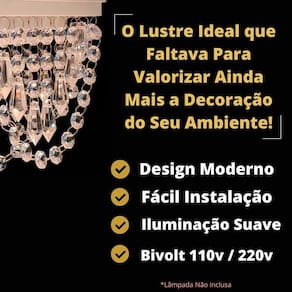 Com uma altura de 15 cm, esta luminária possui voltagem bivolt, podendo ser utilizada tanto em redes elétricas de 127v quanto de 220v. Além disso, este lustre é enviado montado e pronto para instalação, facilitando assim o processo de utilização.