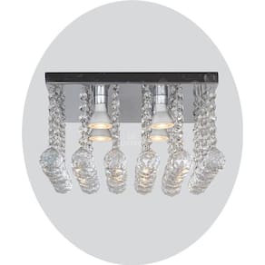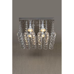 * Base de inox espelhado 30x30cm com acabamento a laser. * Castanhas de cristal de 14mm. * Modelo para 04 Lâmpadas GU10 (Lâmpadas não inclusas ) * Direto da fábrica para seu ambiente