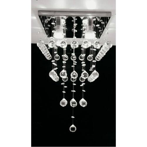 Lustre De Cristal Para Sala E Quarto, Com Base Inox 30x30cm - Voltagem: Bivolt / Tamanho: 80cm