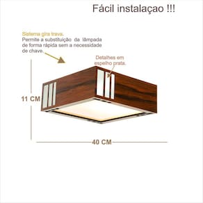 DIMENSÕES: Comprimento: 40cm Largura: 40 cm Altura: 11 cm Peso: 3,5 kg Qtde de lâmpadas: 3 led 6 a 15 W Alimentação: Bivolt 110/220