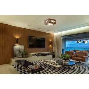Lustre decorativo madeira plafon pipa 40cm Cor: pau ferro A iluminação certa pode transformar um ambiente, deixando-o mais requintado, confortável e aconchegante. Nossas luminárias são criadas e desenvolvidas com a intenção fazer essa transformação, pois são construídas com material de primeira e com projetos muito bem elaborados, unindo beleza, funcionalidade e bom gosto. Conseguimos com elas, fazer o casamento do acrílico, alumínio e madeira de maneira harmônica.