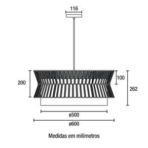 Com design inspirado nas raízes brasileiras, os Pendentes Gaia trazem em sua cúpula o equilíbrio da união do aço com o algodão.Traçado artesanalmente, o fio de algodão cru Barroco Macramê da Círculo soma a estética natural do produto e transmite a sensação de acolhimento aos ambientes.A Linha Gaia é para quem busca aconchego e originalidade.Empresa: Blumenau IluminaçãoMarca: Blumenau IluminaçãoNão acompanha lâmpadas.CARACTERÍSTICAS: Base Soquete: E27Composição do Produto: Aço + Fio AlgodãoMúltiplo Base Soquete: 1xPotência: 60WTensão: 100-240VTipologia Produto: SobreporTempo de Garantia: 1 AnoAcabamento: Pintura PóÍndice de Proteção: 20Dimensões MM : 595,00 x 240,00 x 595,00 Comp. X Alt. X Larg. Tamanho da Base: 116mmLâmpadas Recomendadas A: Bulbo LED A60Acompanha Kit Fixação: SIMProduto LED: NÃO