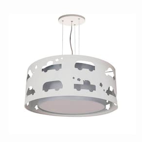 Pendente - Modelo Aviões duplo com recortes Marca: Tom Luz Modelo ideal para compor a decoração dos quartinhos infantis. Proporciona uma iluminação aconchegante ao ambiente. Medida: 50x16 Cúpula externa produzida em laminado PET flexível na tonalidade branca; Cúpula interna produzida em PSAI de Alto Impacto e revestida em tecido; Composição do tecido: Algodão / Cor: Cinza Fechamento total na cúpula interna (para esconder as lâmpadas) Bivolt (110/220) Capacidade para 3 Lâmpadas rosca comum E-27 LED 15W (não inclusas); Kit com canopla, fio de energia e cabos de aço com 1,20M (ajustável) Embalagem: Caixa de papelão Acabamento: PET Acompanha Cúpula: Sim Acompanha Lâmpada: Não Altura: 16 Altura Regulável: Sim Ambiente de Iluminação: Interno Ambiente Principal: Quarto Infantil Comprimento: 50 Comprimento do Cabo: 120 Cor: Cinza Cor do Acabamento: Branco Cor do Produto: Cinza Diâmetro: 50 Formato: Cilindrico Largura: 50 Linha ou Coleção: INFANTIL CARRINHOS Materiais Secundários: Tecido Material da Cúpula: PET, PS DE ALTO IMPACTO Material Principal: Tecido Origem do Produto: Nacional Peso: 1.42 Possui Braços: Não Possui Cristal: Não Potência: 15 Profundidade: 50 Quantidade de Itens: 1 Quantidade de Lâmpadas: 3 Tipo de Luminária: Cúpula