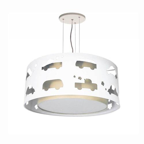 Pendente - Modelo Aviões duplo com recortes Marca: Tom Luz Modelo ideal para compor a decoração dos quartinhos infantis. Proporciona uma iluminação aconchegante ao ambiente. Medida: 50x16 Cúpula externa produzida em laminado PET flexível na tonalidade branca; Cúpula interna produzida em PSAI de Alto Impacto e revestida em tecido; Composição do tecido: Algodão / Cor: Crú Fechamento total na cúpula interna (para esconder as lâmpadas) Bivolt (110/220) Capacidade para 3 Lâmpadas rosca comum E-27 LED 15W (não inclusas); Kit com canopla, fio de energia e cabos de aço com 1,20M (ajustável) Embalagem: Caixa de papelão Acabamento: PET Acompanha Cúpula: Sim Acompanha Lâmpada: Não Altura: 16 Altura Regulável: Sim Ambiente de Iluminação: Interno Ambiente Principal: Quarto Infantil Comprimento: 50 Comprimento do Cabo: 120 Cor: Cru/Branco Cor do Acabamento: Branco Cor do Produto: Cru/Branco Diâmetro: 50 Formato: Cilindrico Largura: 50 Linha ou Coleção: INFANTIL CARRINHOS Materiais Secundários: Tecido Material da Cúpula: PET, PS DE ALTO IMPACTO Material Principal: Tecido Origem do Produto: Nacional Peso: 1.42 Possui Braços: Não Possui Cristal: Não Potência: 15 Profundidade: 50 Quantidade de Itens: 1 Quantidade de Lâmpadas: 3 Tipo de Luminária: Cúpula