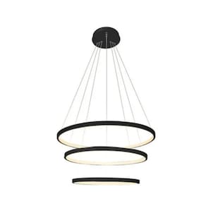 ESPECIFICAÇÕES TÉCNICAS: Marca: BRINOVAR Modelo: Pendente 3 Anéis Cor: Preto Acabamento: Acetinado Material: Aros e iluminação em led Indicação: Ambiente Interno Instalação: Teto Potência Total: 3 leds 23w, 30w e 36w - Total 89w Temperatura da Iluminação: Branco Neutro 3200k Sistema: Energia Elétrica Voltagem: Bivolt Medidas Arco Pequeno: Diâmetro 30cm Medidas Arco Médio: Diâmetro 40cm Medidas Arco Grande: Diâmetro 60cm Cabo ajustável de até 1.50 metros Fácil Ajuste Led integrado Garantia: 90 dias