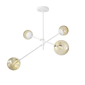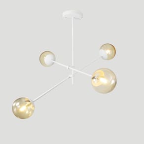 Lustre Lirio Com 4 Globos Esfera De Vidro âmbar - Branco A luminária modelo LIRIO tem um ar contemporâneo, um estilo moderno, minimalista e ao mesmo tempo uma sensação retrô. O lustre pode ser colocado em quartos, salas de jantar ou estar e as arandelas indicamos para lounges, salas, dormitórios ou até mesmo em lavabos. Com Design simples trazem classe e estilo a qualquer ambiente. Descrição Técnica: - Modelo: Lustre Lirio - Acabamento: Pintura a pó térmica - Tamanho dos Globos de Vidro: 120mm - Quantidade de Globos de Vidro e soquetes: 4 - Material: Globo em Vidro e Hastes em Alumínio - Tamanho Aproximado (LxA) com os Globos de Vidro: 82 cm x 45 cm - Soquete: Padrão G9 - Bivolt: Sim ****