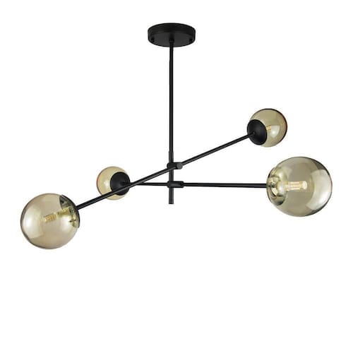 Lustre Lirio Com 4 Globos Esfera De Vidro Ambar - Preto A luminária modelo LIRIO tem um ar contemporâneo, um estilo moderno, minimalista e ao mesmo tempo uma sensação retrô. O lustre pode ser colocado em quartos, salas de jantar ou estar e as arandelas indicamos para lounges, salas, dormitórios ou até mesmo em lavabos. Com Design simples trazem classe e estilo a qualquer ambiente. Descrição Técnica: - Modelo: Lustre Lirio - Acabamento: Pintura a pó térmica - Tamanho dos Globos de Vidro: 120mm - Quantidade de Globos de Vidro e soquetes: 4 - Material: Globo em Vidro e Hastes em Alumínio - Tamanho Aproximado (LxA) com os Globos de Vidro: 82 cm x 45 cm - Soquete: Padrão G9 - Bivolt: Sim ****
