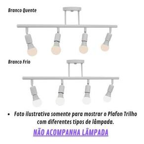 Luminária plafon 4 e27 trilho branco fosco --------------------------------------------------------------------------------------------------------------- Descrição do produto: Modelo: plafon trilho articulável 4 e27 Material: alumínio Cor do acabamento: branco fosco Tensão de rede: bivolt 127v / 220v Ambiente: interno/externo : 6 meses contra defeitos de fabricação Dicas importantes Produto com disponível. Confira o produto desejado antes de finalizar a compra. Tire todas as suas dúvidas com o vendedor. Mantenhas seus dados atualizados, após a compra as informações não poderão ser mudadas. Antes de abrir uma reclamação consulte o vendedor, temos o prazer em entender para atender. Aguardamos sua avaliação positiva : Contra defeitos de fabricação. Envio Loja de fábrica