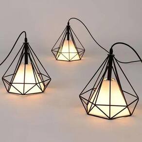 O Lustre Luminária Pendente estilo industrial retrô para sua casa proporciona sofisticação valorizando sua decoração. Utilização: Sala de estar, sala de jantar, área de churrasqueira, varanda, suítes, quartos, corredor, hall, mezanino, escadas, lojas, restaurantes e etc. Para que você tenha uma experiência mais agradável e aconchegante e para valorizar o design da sua luminária industrial retrô aconselhamos a utilização de lâmpadas decorativas estilo bulbo transparente com design diferenciado e temperatura de cor mais amarelada. ATENÇÃO: ANUNCIO REFERENTE Á APENAS 1 UNIDADE DO PRODUTO ATENÇÃO: PRODUTO NÃO ACOMPANHA LÂMPADA ATENÇÃO - VOLTAGEM: BIVOLT ATENÇÃO: PRODUTO TOTALMENTE NA COR PRETO. Características: Cor: Preto Material: Metal Formato: Diamante Tipo de Soquete: E27 Soquete em Cerâmica Potência Máxima da Lâmpada: 40W Cômodo Indicado: Multiuso Áreas Indicadas: Internas Conteúdo da Embalagem: 1 Lustre Pendente 1 Cabo de energia para Lustre 4 Parafusos 2 Buchas Dimensões Aproximadas da Cúpula em Diamante: Altura: 23 cm Largura: 22 cm Circunferência: 72 cm Comprimento do cabo de energia para o Lustre: 80 cm Dimensão da Cuba branca interna: Altura: 15 cm Largura: 17 Circunferência: 59 cm 3 Meses de Garantia Contra Defeito de Fabricação **380g Mod: ASP-7921