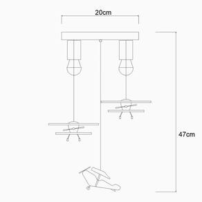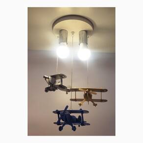 Lustre Luminária Infantil Aviões Azul, Bronze E Prata 20x47 Luminária indicada para uso interno. Acabamento de teto chapa em alumínio com pintura epóxi brancaPingentes de aviões em MDF pintado cor: azul, bronze e prata Soquetes E27 - acabamento cromadoCorrentinhas de sustentação em metal niquelado.Medidas: 20cm de diâmetro chapa por 47cm de altura. Capacidade para duas lâmpadas LED com rosca comum E-27 - NÃO INCUSAS. Voltagem: 110 / 220V Bivolt Pode ser instalada em teto de alvenaria/ gesso/ pvc/ madeiraEmbalagem em caixa de papelão.