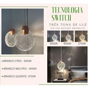 Com seu design que imita a lua e detalhes de bolha na parte de cristal, a peça traz aconchego e leveza ao ambiente. Fica lindo para complementar a iluminação na cabeceira, para dar um charme ao banheiro/lavabo, destacar um hall, ou até mesmo utilizar mais que uma peça ajustando o fio em diferentes alturas e compor uma decoração única.