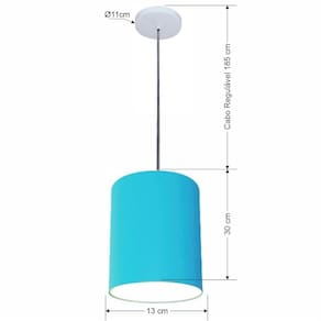 Lustre Luminária Pendente Vivare Free Lux PE-4102BR Cúpula em Tecido 13x30cm - Cor: Azul-turquesa | Cor da Canopla: Canopla branca e fio cristal