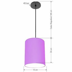 Lustre Luminária Pendente Vivare Free Lux PE-4102PR Cúpula em Tecido 13x30cm - Cor: Lilás | Cor da Canopla: Canopla preta e fio preto
