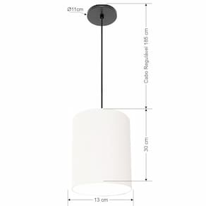 Lustre Luminária Pendente Vivare Free Lux PE-4102PR Cúpula em Tecido 13x30cm - Cor: Branca | Cor da Canopla: Canopla preta e fio preto
