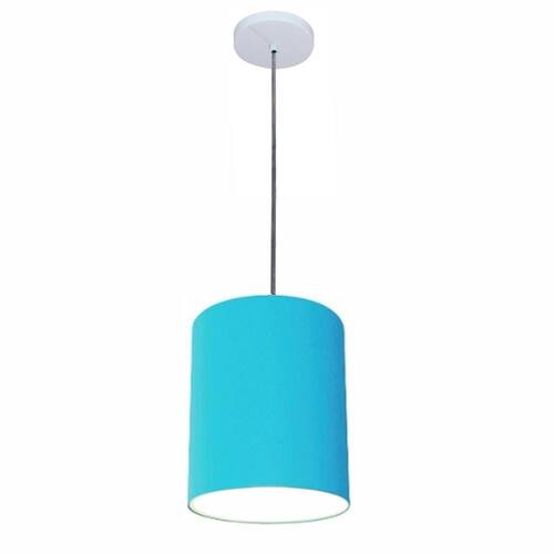 Lustre Luminária Pendente Vivare Free Lux PE-4103BR Cúpula em Tecido 15x20cm - Cor: Azul-turquesa | Cor da Canopla: Canopla branca e fio cristal