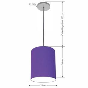 Lustre Luminária Pendente Vivare Free Lux PE-4103CZ Cúpula em Tecido 15x20cm - Cor: Roxo | Cor da Canopla: Canopla cinza e fio cristal
