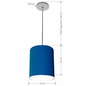 Lustre Luminária Pendente Vivare Free Lux PE-4103CZ Cúpula em Tecido 15x20cm - Cor: Azul-marinho | Cor da Canopla: Canopla cinza e fio cristal