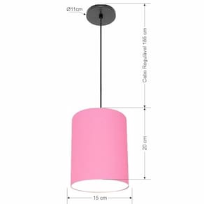 Lustre Luminária Pendente Vivare Free Lux Pe-4103pr Cúpula Em Tecido 15x20cm Rosa-tela Canopla Preta E Fio Preto