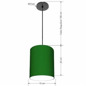 Lustre Luminária Pendente Vivare Free Lux PE-4103PR Cúpula em Tecido 15x20cm - Cor: Verde-folha | Cor da Canopla: Canopla preta e fio preto