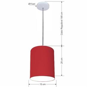 Lustre Luminária Pendente Vivare Free Lux PE-4104BR Cúpula em Tecido 15x25cm - Cor: Bordo | Cor da Canopla: Canopla branca e fio cristal