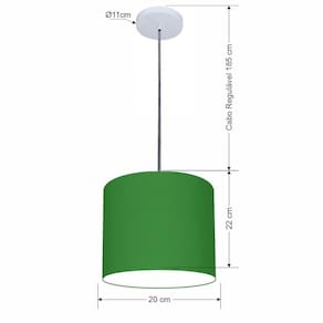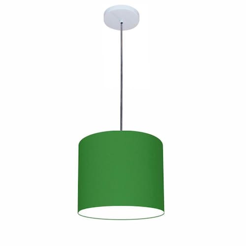 Lustre Luminária Pendente Vivare Free Lux Pe-4105br Cúpula Em Tecido 20x22cm Verde-folha Canopla Branca E Fio Cristal