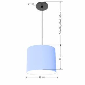 Lustre Luminária Pendente Vivare Free Lux PE-4105PR Cúpula em Tecido 20x22cm - Cor: Azul-bebê | Cor da Canopla: Canopla preta e fio preto