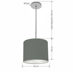 Lustre Luminária Pendente Vivare Free Lux PE-4106BR Cúpula em Tecido 20x25cm - Cor: Cinza-escuro | Cor da Canopla: Canopla branca e fio cristal
