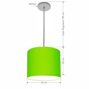 Lustre Luminária Pendente Vivare Free Lux PE-4106CZ Cúpula em Tecido 20x25cm - Cor: Verde-limão | Cor da Canopla: Canopla cinza e fio cristal