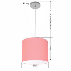 Lustre Luminária Pendente Vivare Free Lux PE-4106CZ Cúpula em Tecido 20x25cm - Cor: Rosa-tela | Cor da Canopla: Canopla cinza e fio cristal
