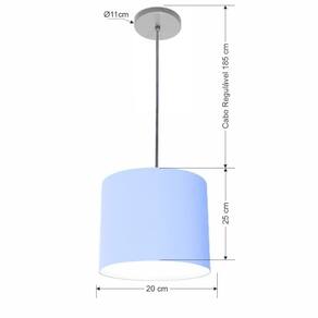 Lustre Luminária Pendente Vivare Free Lux PE-4106CZ Cúpula em Tecido 20x25cm - Cor: Azul-bebê | Cor da Canopla: Canopla cinza e fio cristal