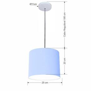 Lustre Luminária Pendente Vivare Free Lux Pe-4107br Cúpula Em Tecido 25x20cm Azul-bebê Canopla Branca E Fio Cristal