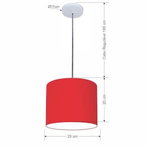 Lustre Luminária Pendente Vivare Free Lux Pe-4107br Cúpula Em Tecido 25x20cm Vermelho Canopla Branca E Fio Cristal