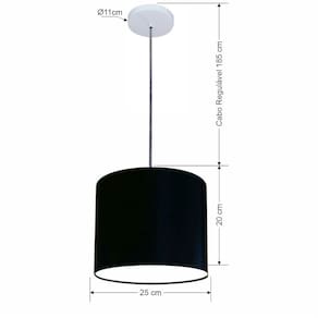 Lustre Luminária Pendente Vivare Free Lux PE-4107BR Cúpula em Tecido 25x20cm - Cor: Preta | Cor da Canopla: Canopla branca e fio cristal