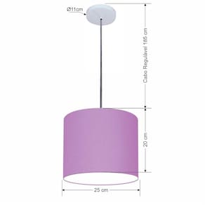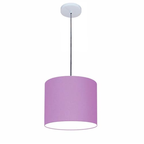 Lustre Luminária Pendente Vivare Free Lux PE-4107BR Cúpula em Tecido 25x20cm - Cor: Lilás | Cor da Canopla: Canopla branca e fio cristal