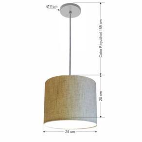Lustre Luminária Pendente Vivare Free Lux PE-4107CZ Cúpula em Tecido 25x20cm - Cor: Rustico-bege | Cor da Canopla: Canopla cinza e fio cristal