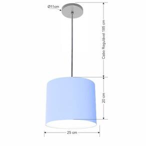 Lustre Luminária Pendente Vivare Free Lux PE-4107CZ Cúpula em Tecido 25x20cm - Cor: Azul-bebê | Cor da Canopla: Canopla cinza e fio cristal