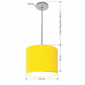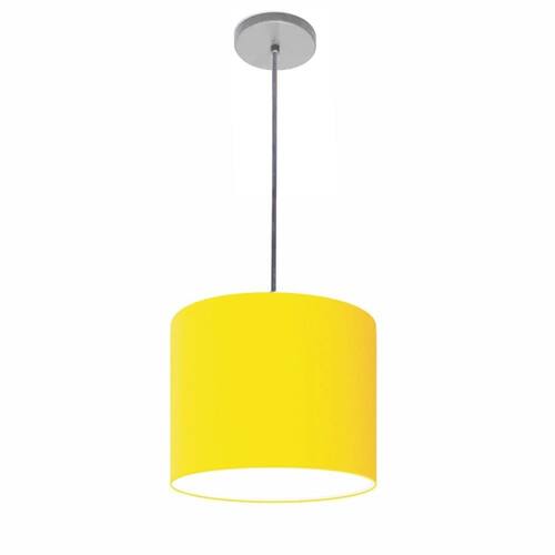 Lustre Luminária Pendente Vivare Free Lux PE-4107CZ Cúpula em Tecido 25x20cm - Cor: Amarelo | Cor da Canopla: Canopla cinza e fio cristal