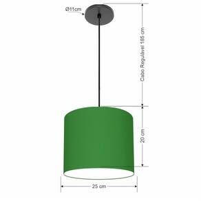 Lustre Luminária Pendente Vivare Free Lux PE-4107PR Cúpula em Tecido 25x20cm - Cor: Verde-folha | Cor da Canopla: Canopla preta e fio preto