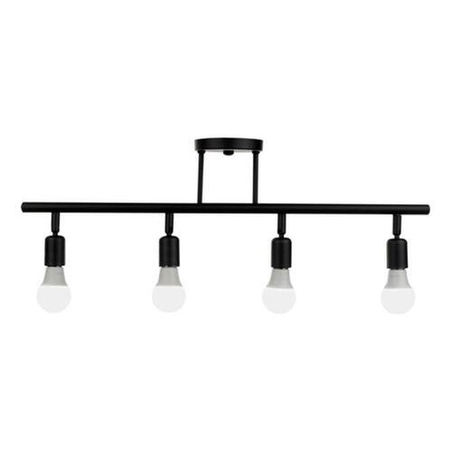 Luminária plafon 4 e27 trilho preto fosco --------------------------------------------------------------------------------------------------------------- Descrição do produto: Modelo: plafon trilho articulável 4 e27 Material: alumínio Cor do acabamento: preto fosco Tensão de rede: bivolt 127v / 220v Ambiente: interno/externo Garantia: 6 meses contra defeitos de fabricação