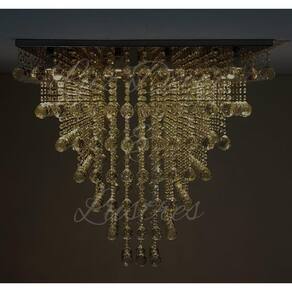 Lustre Moderno Plafon De Cristais K9 Base Inox 70x70 Para Sala - Tamanho: 1,20m / Voltagem: Bivolt