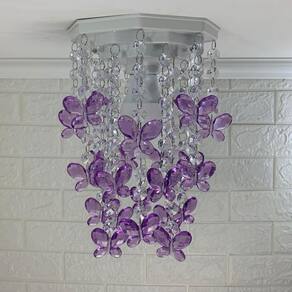 Lustre Com Pingente Decoração Bebê Menina Borboletas Lilás