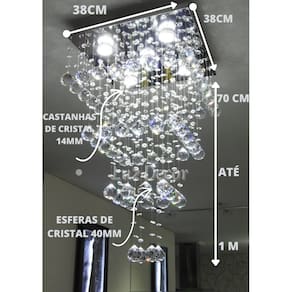 A Luz Decor e Lustres, fabricantes de lustres de cristais, acrílicos, tem como objetivo garantir produtos de qualidade com preços competitivos no mercado de Lustres, Pendentes e Luminárias.DESCRIÇÃO DO PRODUTO* Lustre Com 64 cristais de 40mm* Modelo: Torre* Altura: 70CM Á 1M De Altura* Base de inox espelhado 38x38cm acabamento corte a laser.* Castanhas de cristal de 14mm.* Modelo para 5 Lâmpada GU10 (Lâmpada branco quente inclusa)* Direto da fábrica para seu ambiente