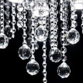 Brilho Intenso: O lustre possui 36 pêndulos, com 18 esferas de 30 mm e aproximadamente 200 castanhas de 14 mm de cristal legítimo (K9), que proporcionam um brilho incomparável.
