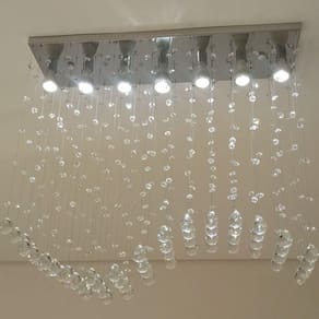 A Luz Decor e Lustres, fabricantes de lustres de cristais, acrílicos, tem como objetivo garantir produtos de qualidade com preços competitivos no mercado de Lustres, Pendentes e Luminárias.DESCRIÇÃO DO PRODUTO* Lustre Com 56 cristais k9 legítimos de 30mm.* Modelo: Onda* Altura: 55cm á 95cm* Base de inox espelhado de 70x18cm com acabamento a laser.* Castanhas de cristal de 14mm.* Modelo para 07 Lâmpadas GU10 (Lâmpadas não inclusas)* Direto da fábrica para seu ambienteFaça sua experiência de compra conosco.