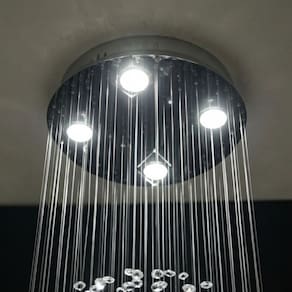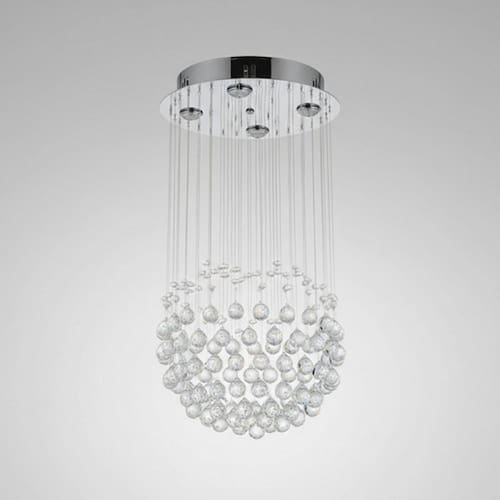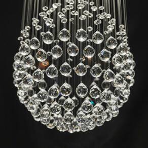 Feito com cristal K9, este lustre é composto por 75 pêndulos, cada um com uma castanha de cristal de 14mm e um fio de aço inoxidável revestido. A base redonda de 30cm de diâmetro é espelhada e feita de aço inox que não enferruja, garantindo durabilidade e um visual impecável.