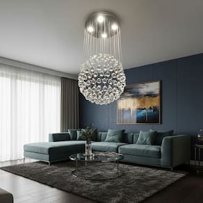 Este lustre pendente é a peça perfeita para adicionar luxo e sofisticação à sua decoração. Com seu elegante formato de globo e acabamento em aço inox polido, ele causa um lindo efeito luminoso que enriquece qualquer ambiente.