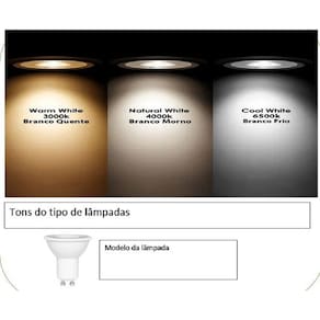 Utiliza: 6 lâmpadas GU10 (dicroicas de Led ou Superled) - Não Inclusas;