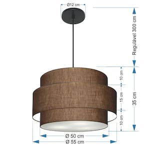 Lustre Para Sala de Jantar Vivare Md-4395 Cúpula em Tecido 55cm - Cor: Café | Voltagem: 127/220V