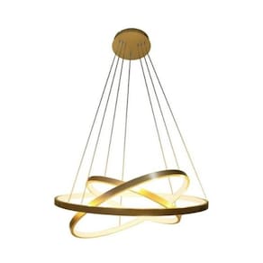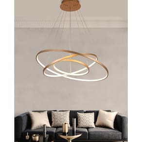 Especificações Técnicas Produto: Lustre pendente circular Marca: Brinovar Tipo: Arcos Modelo: Pendente led 3 anéis Material: Alumínio Cabo: 2m Voltagem: Bivolt Diâmetro dos anéis: 60cm/ 40cm / 30cm Luz: Branco quente 3200k Potência: 89w Cor: Dourado Lâmpada: Led integrado Conteúdo da embalagem: 01 Lustre e parafusos para instalação Marca: Não Informado Ean: 7803329275332